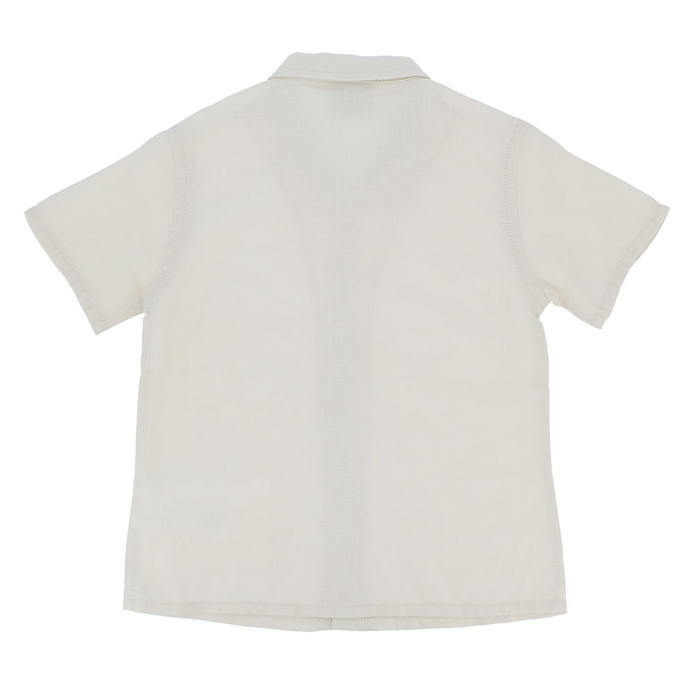 Camicia in lino a maniche corte. Chiusura sul davanti con bottoncini in legno. Questo capo è ecosostenibile perché realizzato in puro lino organico.