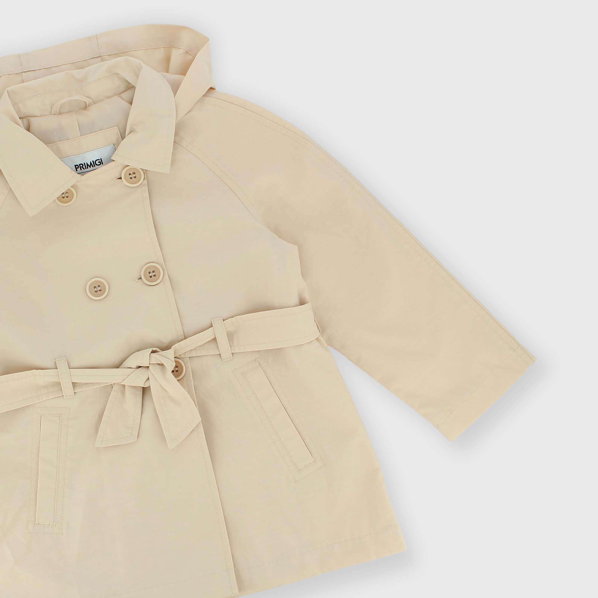 Trench in nylon con cappuccio, a maniche lunghe. Chiusura con bottoni sul davanti. Cinta da inserire sui passanti in vita. Tasche a filetto.