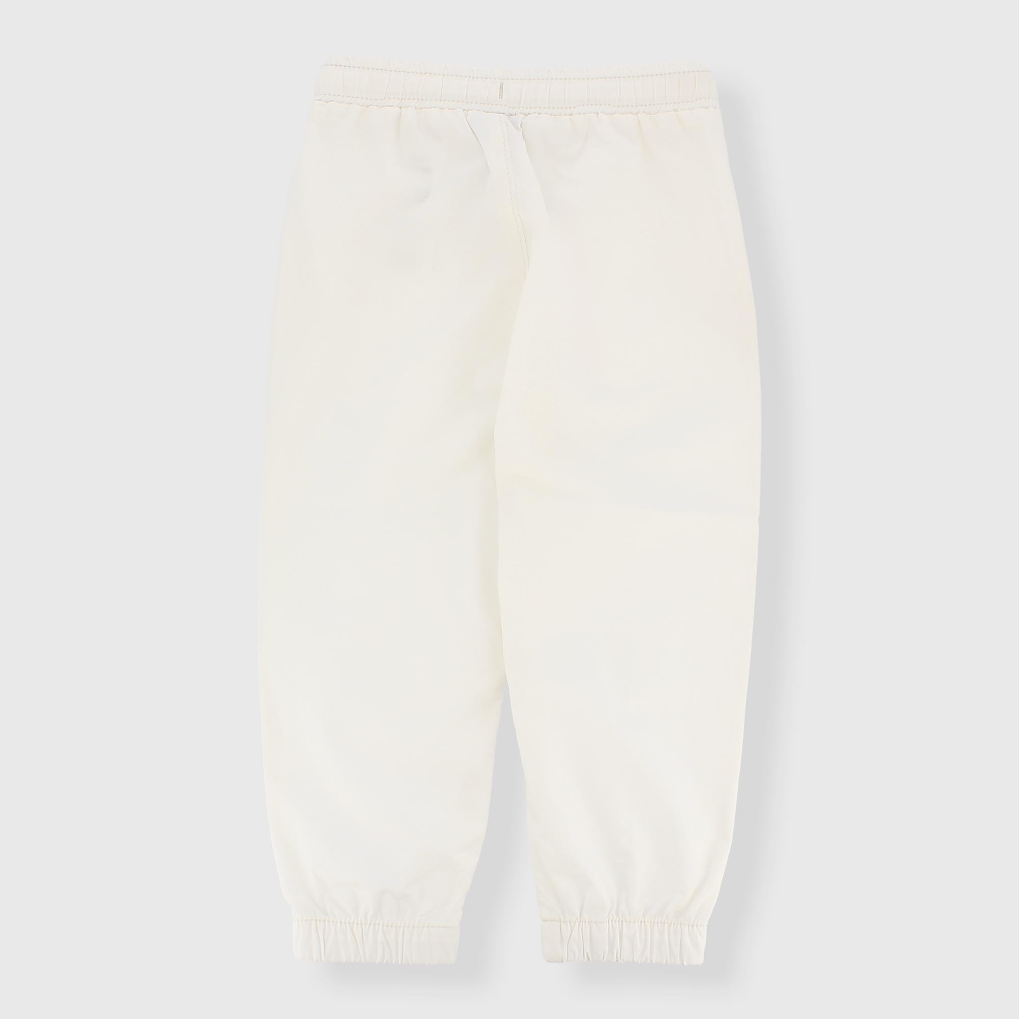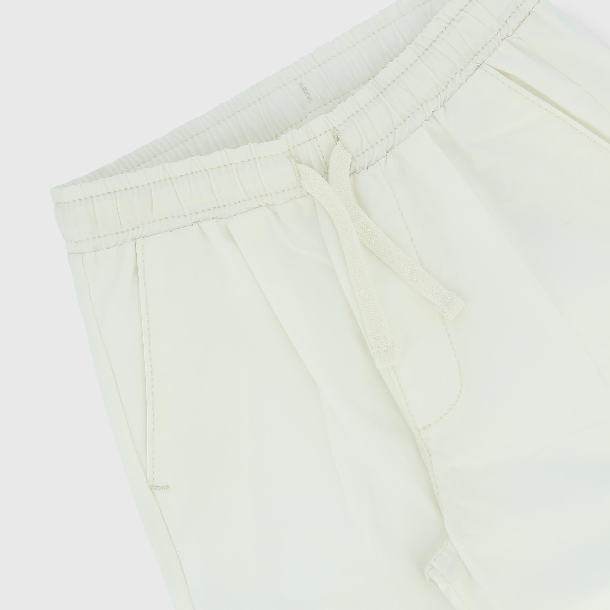 Pantalone in popeline tinto capo con vita elasticizzata e lacci frontali. Tasche alla francese. Fondo elasticato.
