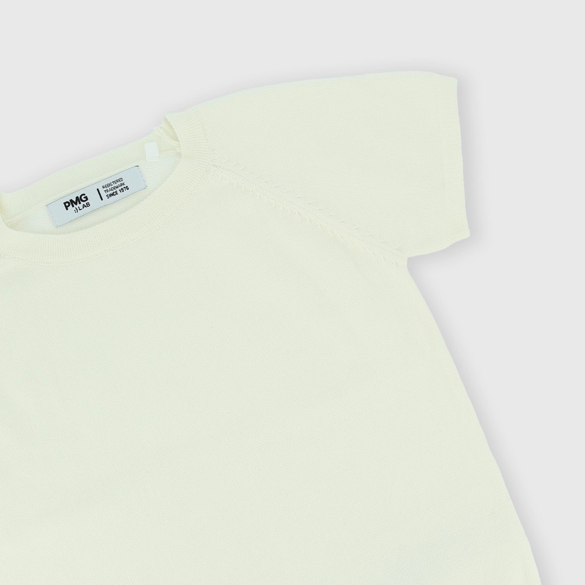 Camiseta tricot de algodón suave, cuello redondo, mangas cortas.