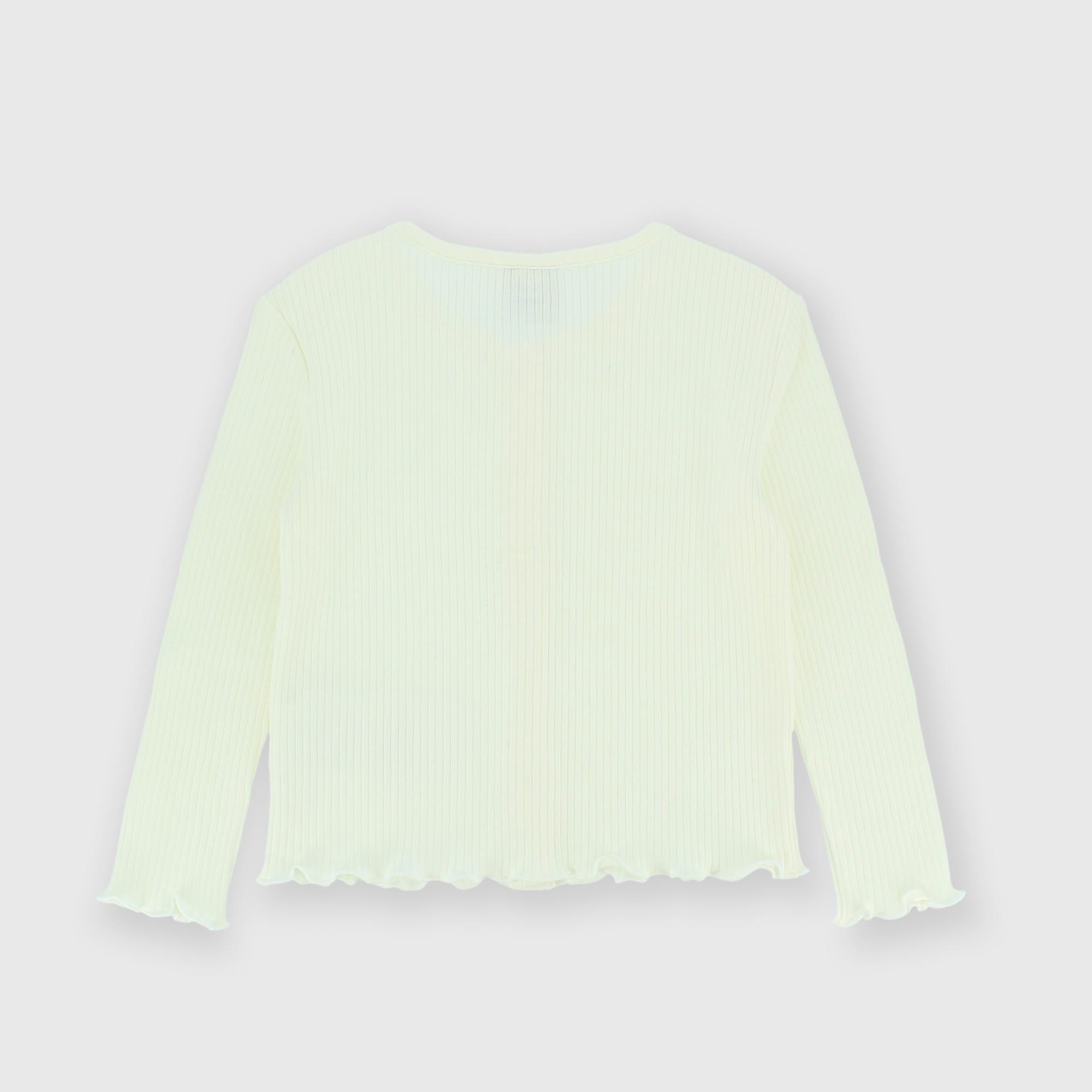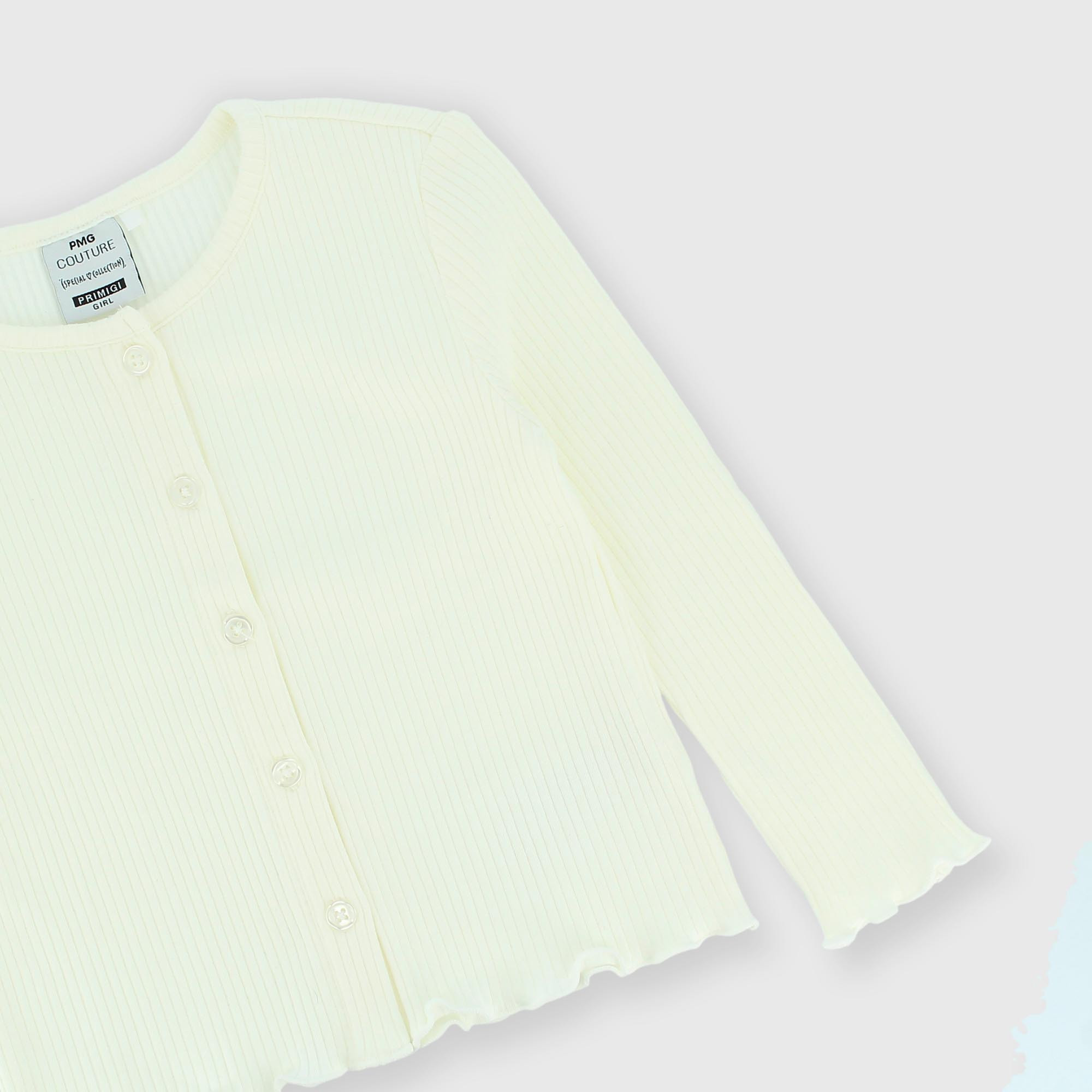 Gerippte Strickjacke mit Rundhalsausschnitt. Knopfverschluss auf der Vorderseite. Puppenstich-Finishes.