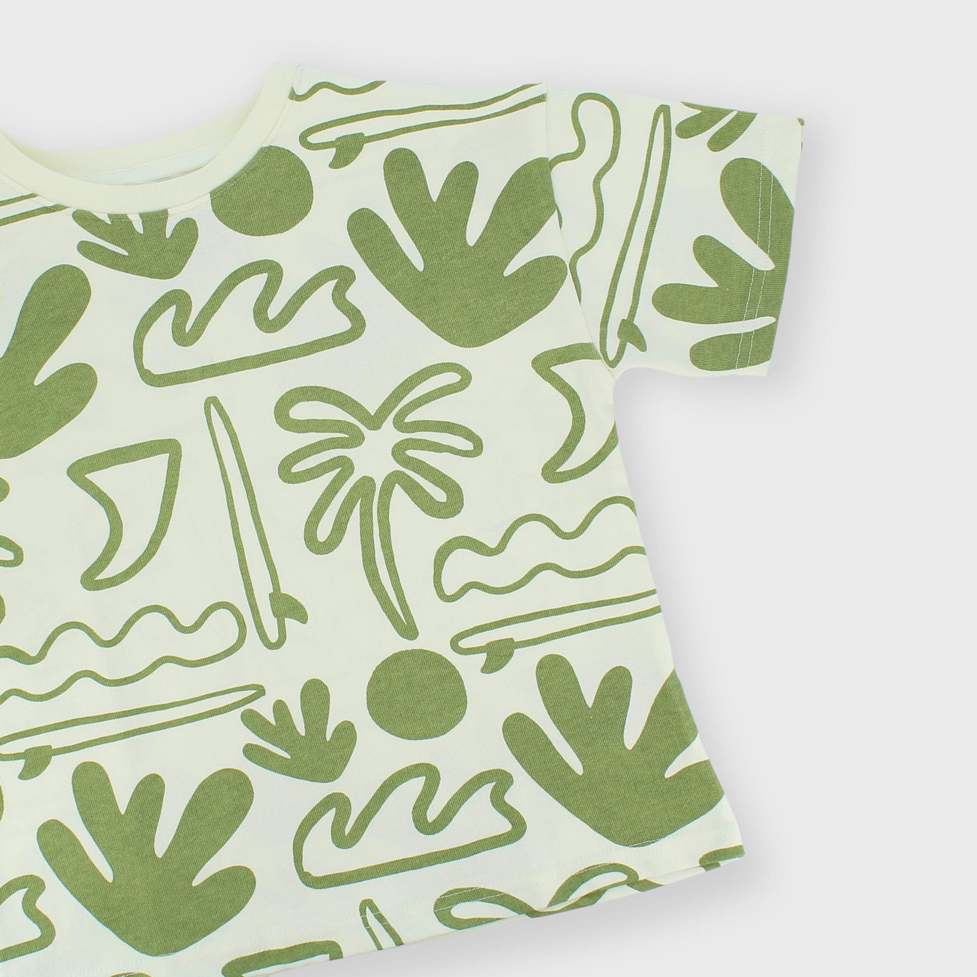 Maglietta in Jersey pesante, girocollo, a maniche corte. Stampa all-over.