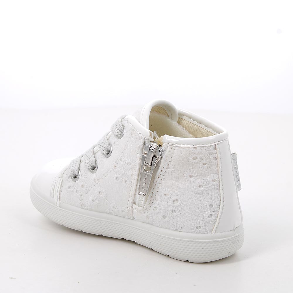 Queste scarpe primi passi presentano un design dolce e delicato, ideale per i più piccoli. Le scarpine sono pensate per offrire comfort e supporto durante i primi passi, con una suola flessibile che facilita i movimenti naturali del piede. I lacci sono morbidi e facili da regolare. La punta e il bordo sono rinforzati con materiale resistente per garantire una maggiore durata. La zip interna permette di calzarle senza doverle slacciare.